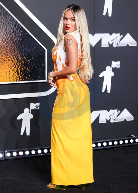 ELMONT, NEW YORK, USA - SEPTEMBER 11: Karol G arrives at the 2024 MTV Video Music Awards held at UBS Arena on September 11, 2024 in Elmont, New York, United States., Credit:Xavier Collin / Avalon