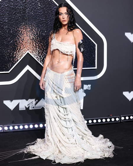 ELMONT, NEW YORK, USA - SEPTEMBER 11: Katy Perry wearing Who Decides War arrives at the 2024 MTV Video Music Awards held at UBS Arena on September 11, 2024 in Elmont, New York, United States., Credit:Xavier Collin / Avalon