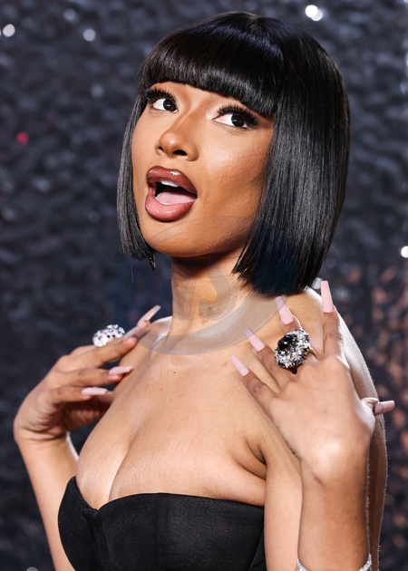 ELMONT, NEW YORK, USA - SEPTEMBER 11: Megan Thee Stallion wearing Nicole + Felicia arrives at the 2024 MTV Video Music Awards held at UBS Arena on September 11, 2024 in Elmont, New York, United States., Credit:Xavier Collin / Avalon