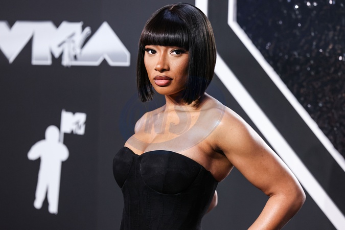 ELMONT, NEW YORK, USA - SEPTEMBER 11: Megan Thee Stallion wearing Nicole + Felicia arrives at the 2024 MTV Video Music Awards held at UBS Arena on September 11, 2024 in Elmont, New York, United States., Credit:Xavier Collin / Avalon