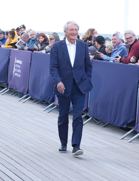 Philippe Augier, maire de Deauville - Michelle Williams inaugure sa cabine en présence de Philippe Augier, maire de la ville, lors du 50ème Festival du Cinéma Américain de Deauville , le 12 septembre 2024. © Denis Guignebourg / Bestimage Michelle Williams inaugurates her cabin, in the presence of the mayor of the city P. Augier, during the 50th Deauville American Film Festival, on September 12, 2024.