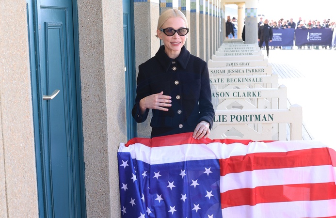 Michelle Williams inaugure sa cabine en présence de Philippe Augier, maire de la ville, lors du 50ème Festival du Cinéma Américain de Deauville , le 12 septembre 2024. © Denis Guignebourg / Bestimage Michelle Williams inaugurates her cabin, in the presence of the mayor of the city P. Augier, during the 50th Deauville American Film Festival, on September 12, 2024.
