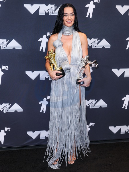 ELMONT, NEW YORK, USA - SEPTEMBER 11: Katy Perry, recipient of the Michael Jackson Video Vanguard Award and winner of the VMAs Most Iconic Performance award for 'Roar' (2013, live from Empire-Fulton Ferry Park) poses in the press room at the 2024 MTV Video Music Awards held at UBS Arena on September 11, 2024 in Elmont, New York, United States., Credit:Xavier Collin / Avalon