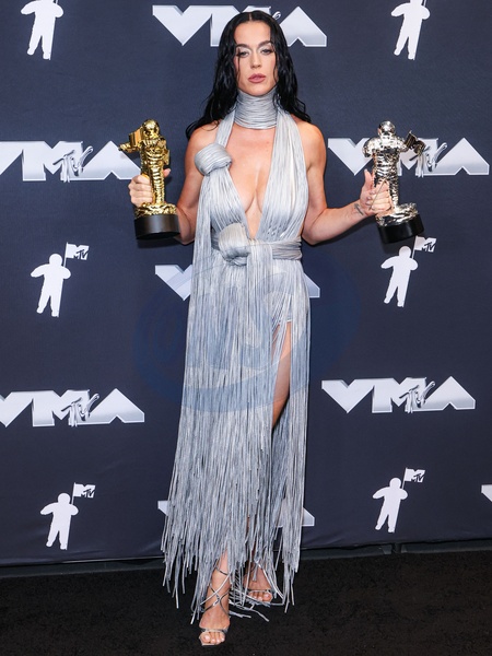 ELMONT, NEW YORK, USA - SEPTEMBER 11: Katy Perry, recipient of the Michael Jackson Video Vanguard Award and winner of the VMAs Most Iconic Performance award for 'Roar' (2013, live from Empire-Fulton Ferry Park) poses in the press room at the 2024 MTV Video Music Awards held at UBS Arena on September 11, 2024 in Elmont, New York, United States., Credit:Xavier Collin / Avalon