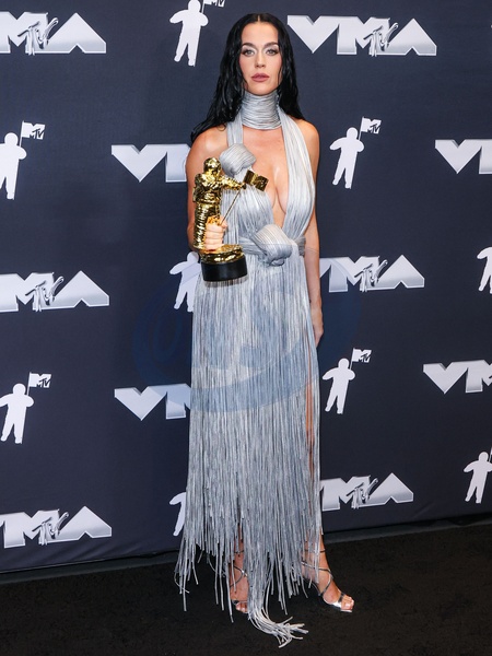 ELMONT, NEW YORK, USA - SEPTEMBER 11: Katy Perry, recipient of the Michael Jackson Video Vanguard Award and winner of the VMAs Most Iconic Performance award for 'Roar' (2013, live from Empire-Fulton Ferry Park) poses in the press room at the 2024 MTV Video Music Awards held at UBS Arena on September 11, 2024 in Elmont, New York, United States., Credit:Xavier Collin / Avalon