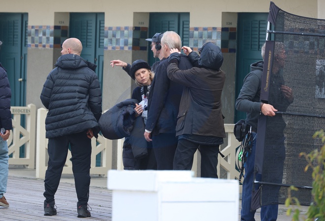 Exclusif - Stellan Skarsgård tourne une scène du prochain film de Joachim Trier (Sentimental Value) sur les planches à Deauville