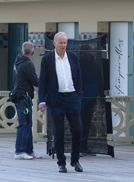 Exclusif - Stellan Skarsgård tourne une scène du prochain film de Joachim Trier (Sentimental Value) sur les planches à Deauville