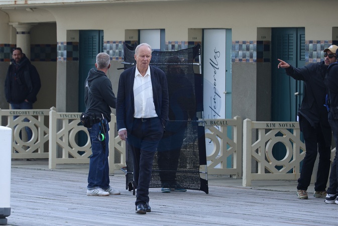 Exclusif - Stellan Skarsgård tourne une scène du prochain film de Joachim Trier (Sentimental Value) sur les planches à Deauville