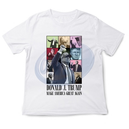 Pictures must credit: Team Trump Presidential candidate Donald Trump has reacted to super Taylor Swift's support for wWhite House rival Kamala Harris — with a t-shirt that parodies the singer's tour merchandise. And an ad for the garment urges "Swifties for Trump” to grab one. The shirt advert also refers to a Swift song "Look what you made me do” The $36 USD / €32 euros t-shirt features a centre image of Republican Trump, 78, in classic fist clench pose surrounded by smaller photos of him in boxed colours. That mirrors a souvenir of 34-year-old Swift's recent Eras tour where she is posed caressing her face surrounded by a selection of photos showing her changing look down the years. It comes hot on the heels of Swift's open endorsement of Democrat Harris , 59, for the 2024 electoral race following the first debate between both presidential hopefuls on September 10. Picture supplied by JLPPA