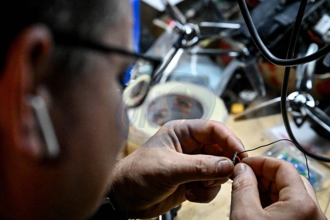 ZAPORIZHZHIA, UKRAINE - SEPTEMBER 11, 2024 - A military engineer finalizes a model of the Ukrainian FPV drone "General Chereshnya", Zaporizhzhia, southeastern Ukraine, Credit:Dmytro Smolienko / Avalon