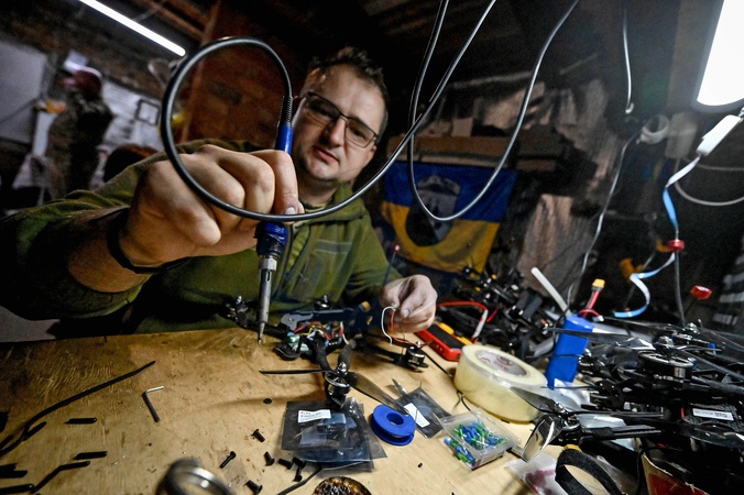 ZAPORIZHZHIA, UKRAINE - SEPTEMBER 11, 2024 - A military engineer finalizes a model of the Ukrainian FPV drone "General Chereshnya", Zaporizhzhia, southeastern Ukraine, Credit:Dmytro Smolienko / Avalon