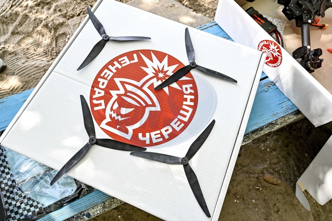 ZAPORIZHZHIA, UKRAINE - SEPTEMBER 11, 2024 - A box with a model of the Ukrainian FPV drone "General Chereshnya", Zaporizhzhia, southeastern Ukraine, Credit:Dmytro Smolienko / Avalon