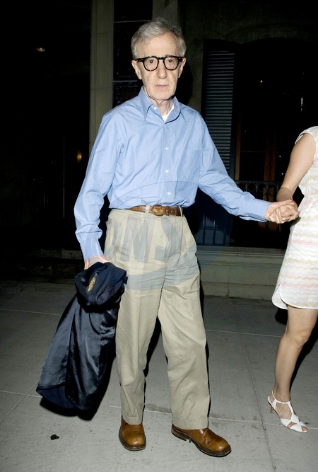 Woody Allen i Soon-Yi wychodza z restauracji Spagos, Beverly Hills