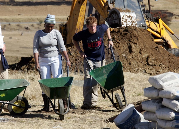 Ksiaze Harry pracuje przy odbudowie szkoly dla dzieci, Lesotho