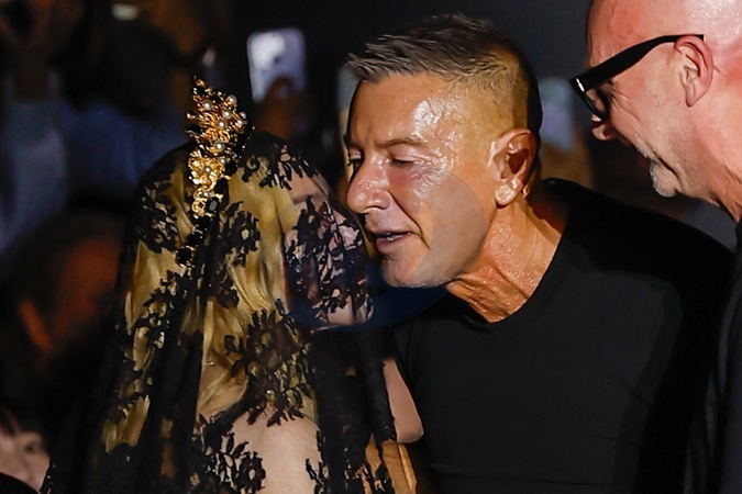 Madonna, Domenico Dolce and Stefano Gabbana are seen on the runway at the Versace fashion show during the Milan Womenswear Spring/Summer 2025 on September 21, 2024 in Milan, Italy.