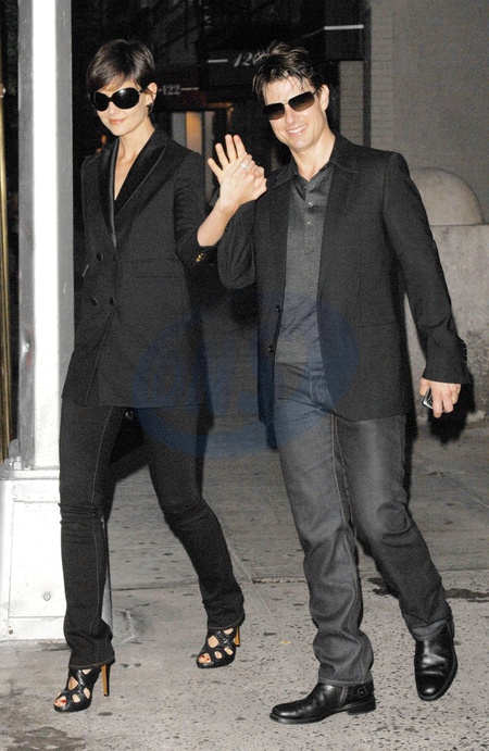 Katie Holmes i Tom Cruise wychodza z apartamentu trzymajac sie za rece, Nowy Jork