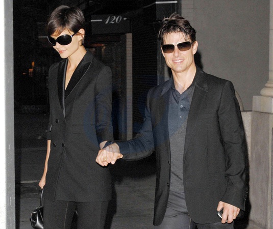 Katie Holmes i Tom Cruise wychodza z apartamentu trzymajac sie za rece, Nowy Jork