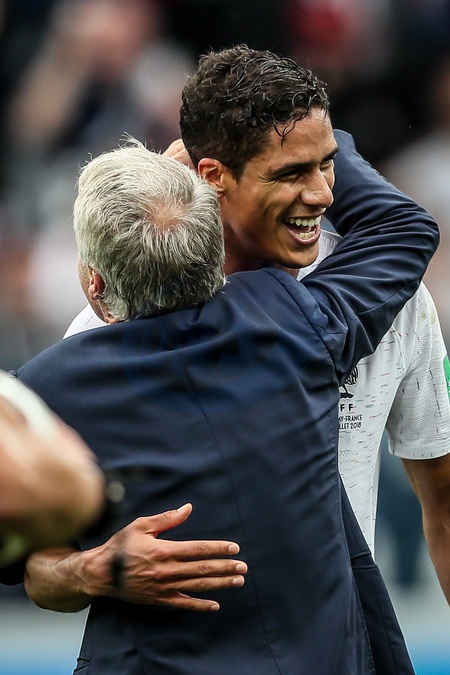 Info - Raphaël Varane prend sa retraite à 31 ans - Didier Deschamps et Raphaël Varane lors du match de quart de finale de la Coupe du Monde Russia2018 "France - Uruguay (FIFA World Cup Russia2018)" au stade Nijni Novgorod. La France a gagné 2-0 et rencontrera la Belgique en demi-finale. Russie, le 6 juillet 2018. © Cyril Moreau/Bestimage Quarter final of FIFA World Cup Russia2018 "France vs Uruguay" held at the Nijni Novgorod Stadium. Russia, July 6th, 2018.