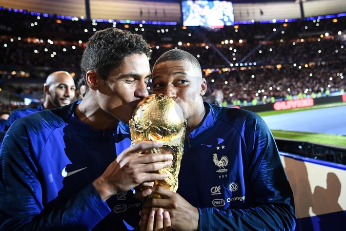 Info - Raphaël Varane prend sa retraite à 31 ans - Info - Kylian Mbappé fêtera ses 20 ans le 20 décembre - Raphaël Varane et Kylian Mbappé - Les Bleus fêtent leur deuxième étoile avec leurs supporters après le match de la Ligue des nations opposant la France aux Pays-Bas, au Stade de France, à Saint-Denis, Seine Saint-Denis, le 9 septembre 2018. © Franck Fife/Pool//Bestimage French player with the FIFA World Cup celebrates with fans after the UEFA Nations League A group one match between France and Netherlands at Stade de France in Paris, France on September 9, 2018.