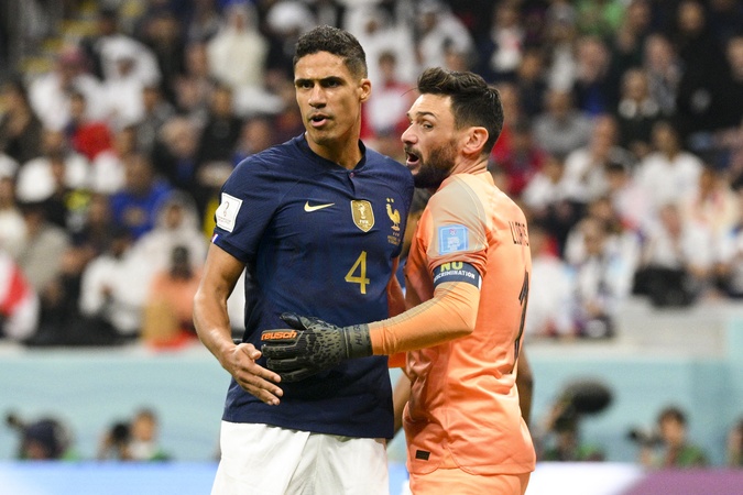 Info - Raphaël Varane prend sa retraite à 31 ans - VARANE Raphael (FRA) / LLORIS Hugo (FRA) au match de football de quart de finale opposant la France à l'Angleterre lors de la coupe du Monde (FIFA 2022) au stade Al Bayt à Al Khor au Qatar, le 10 décembre 2022. © Jean-Baptiste Autissier/Panoramic/Bestimage FIFA World Cup Qatar 2022 quarter final match between England and France at Al Bayt Stadium on December 10, 2022 in Al Khor, Qatar.