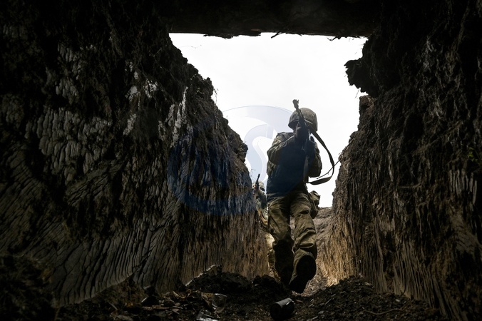 UKRAINE - SEPTEMBER 12, 2024 - A serviceman of the 65th Separate Mechanized Brigade of the Armed Forces of Ukraine walks through the trenches during combat coordination, Ukraine, Credit:Dmytro Smolienko / Avalon