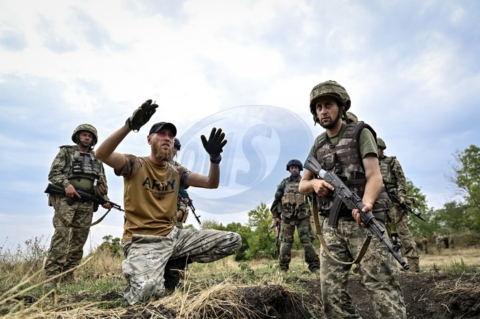 UKRAINE - SEPTEMBER 12, 2024 - Combat training instructor (call sign "Vokha”) (2nd L) is pictured during the combat coordination of the 65th Separate Mechanized Brigade of the Armed Forces of Ukraine, Ukraine, Credit:Dmytro Smolienko / Avalon