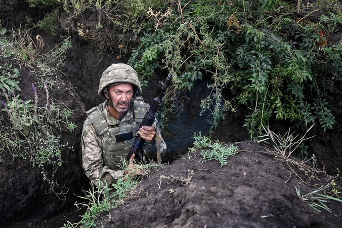 UKRAINE - SEPTEMBER 12, 2024 - A serviceman of the 65th Separate Mechanized Brigade of the Armed Forces of Ukraine sits in the trenches during combat coordination, Ukraine, Credit:Dmytro Smolienko / Avalon