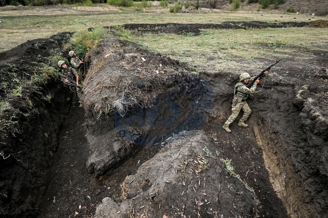 UKRAINE - SEPTEMBER 12, 2024 - Servicemen of the 65th Separate Mechanized Brigade of the Armed Forces of Ukraine are seen in the trenches during combat coordination, Ukraine, Credit:Dmytro Smolienko / Avalon
