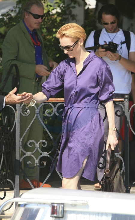 Tilda Swinton wychodzi z hotelu, Wenecja