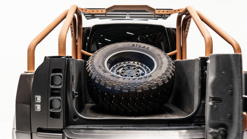 Pictures must credit: Apocalypse A custom car company has taken a Land Rover — and turned it into a vehicle for surviving a world in turmoil. Florida-based Apocalypse has turned the UK company's Defender model into a six wheel drive beast called, appropriately, the World Ender. It is based on the high-performance Defender Carpathian Edition, which has a supercharged 5.0L V-8 engine. The body has been stretched by adding a four foot / 122 cm long flatbed to go with an extra set of wheels. A middle axle gearbox gives power to all six wheels. Apocalypse says it has 518 bhp. It is also equipped with independent pneumatic suspension in the front and back for a relatively smooth ride. It has a front crash barm, custom fenders, armoured side steps, roof rack and roof-mounted lights plus a roll cage. All six wheels are 20-inch in 38-inch all-terrain tyres. © Apocalypse via JLPPA/Bestimage