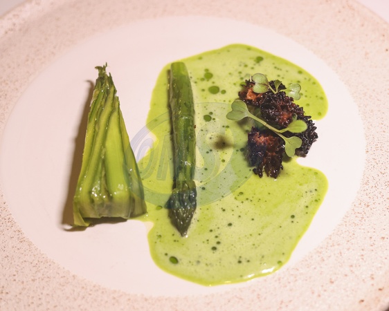 Asparagus with morels and tarragon at CORD by Le Cordon Bleu in Fleet Street, London, United Kingdom., Credit:Cat Morley / Avalon