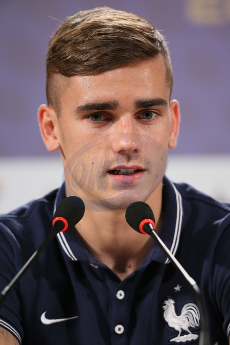 Info - Antoine Griezmann annonce sa retraite internationale - Antoine Griezmann - Conférence de presse des joueurs de l'équipe de France à Ribeirao Preto au Brésil le 16 juin 2014. Press Conference of the soccer French players in Ribeirao Preto, Brazil on June 16, 2014.