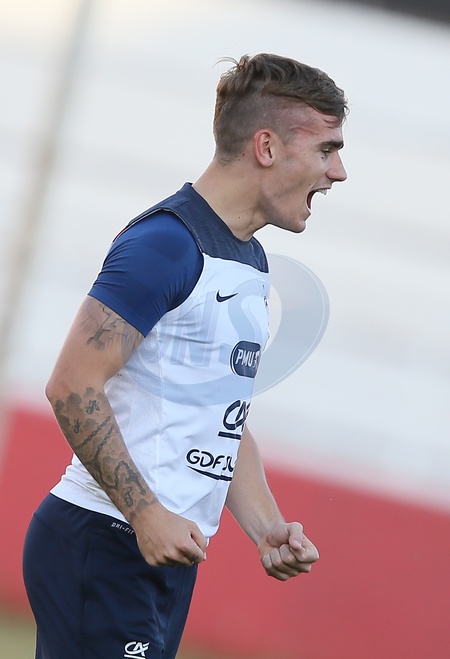 Info - Antoine Griezmann annonce sa retraite internationale - Antoine Griezmann - Certains joueurs de l'équipe de France semblent beaucoup aimer les tatouages, lors de l'entraînement à Ribeirao Preto, le 22 juin 2014, pendant le coupe du monde de la FIFA 2014. Some players of french team like the tattoos, pictured during the training in Ribeirao Preto on June 22 2014, during the 2014 world cup of the FIFA.