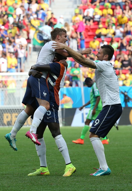 Info - Antoine Griezmann annonce sa retraite internationale - Antoine Griezmann, Mamadou Sakho, Olivier Giroud - Joueurs de l'équipe de France pendant le match France - Nigéria à Brasilia au Brésil, le 30 juin 2014, lors de la coupe du monde de la FIFA 2014. Players of the team of France pictured during the 2014 FIFA World Cup Brazil match between France and Nigeria in Brasilia, Brazil, on June 30th, 2014.