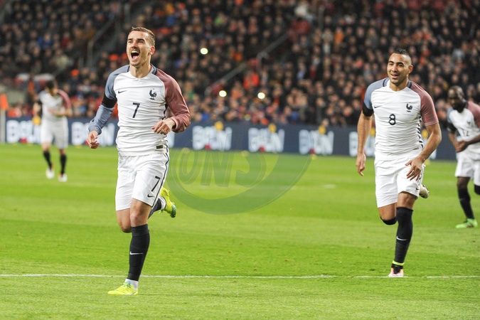 Info - Antoine Griezmann annonce sa retraite internationale - Naissance - Antoine Griezmann est papa - Dimitri Payet et Antoine Griezmann - Match amical Pays-Bas contre la France à l'Amsterdam ArenA, le 25 mars 2016. © Perusseau/Bestimage International friendly Holland v France match, in Amsterdam on March 25th 2016.