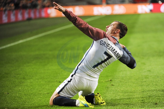 Info - Antoine Griezmann annonce sa retraite internationale - Naissance - Antoine Griezmann est papa d'un troisième enfant une petit fille prénommée Alba - Naissance - Antoine Griezmann est papa pour la deuxième fois d'un petit garçon prénommé Amaro - Antoine Griezmann - Match amical Pays-Bas contre la France à l'Amsterdam ArenA, le 25 mars 2016. © Perusseau/Bestimage International friendly Holland v France match, in Amsterdam on March 25th 2016.