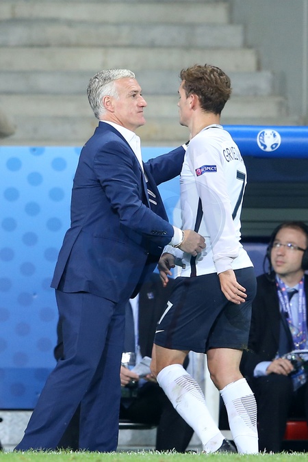 Info - Antoine Griezmann annonce sa retraite internationale - Le sélectionneur français Didier Deschamps et Antoine Griezmann pendant le match de l'UEFA Euro 2016 France-Suisse au Stade Pierre-Mauroy à Lille, le 19 juin 2016. © Cyril Moreau/Bestimage During the UEFA Euro 2016 Group A football match between Switzerland and France at Stade Pierre-Mauroy in Lille, France on June 19, 2016. © Cyril Moreau/Bestimage