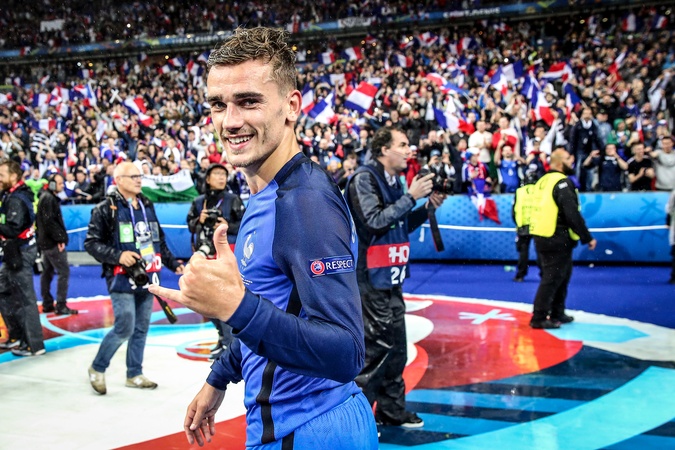 Info - Antoine Griezmann annonce sa retraite internationale - Naissance - Antoine Griezmann est papa d'un troisième enfant une petit fille prénommée Alba - Naissance - Antoine Griezmann est papa pour la deuxième fois d'un petit garçon prénommé Amaro - Antoine Griezmann - Match de quart de finale de l'UEFA Euro 2016 France-Islande au Stade de France à Saint-Denis le 3 juillet 2016. © Cyril Moreau / Bestimage Soccer match UEFA EURO 2016 quarter-final match between France and Iceland at Stade de France in Paris, France on July 3, 2016.