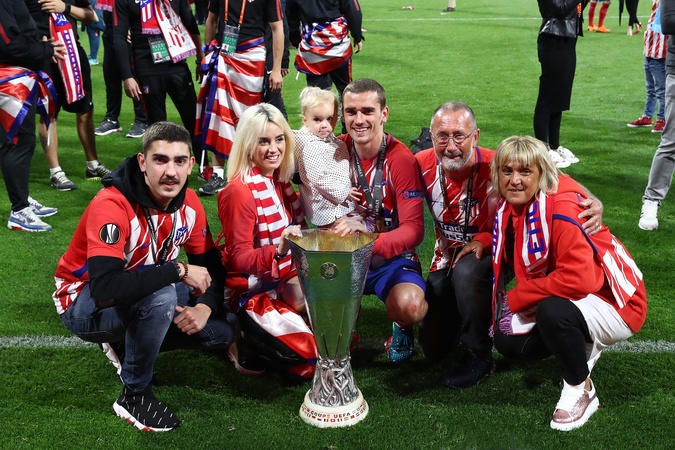 Antoine Griezmann en famille après la finale de la Ligue Europa au stade Groupama à Lyon