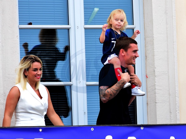 Info - Antoine Griezmann annonce sa retraite internationale - Théma - Les femmes et compagnes des joueurs de l'équipe de France - Naissance - Antoine Griezmann est papa d'un troisième enfant une petit fille prénommée Alba - Naissance - Antoine Griezmann est papa pour la deuxième fois d'un petit garçon prénommé Amaro - Antoine avec sa femme Erika Choperena et sa fille Mia - Antoine Griezmann, fêté par sa ville de Mâcon 5 jours après sa victoire à la finale de la Coupe du Monde 2018 à Mâcon le 20 juillet 2018 © Romain Doucelin / Bestimage Antoine Griezmann came to thank the supporters of his hometown of Mâcon, following the victory of the 2018 football world cup in Mâcon July 20, 2018.