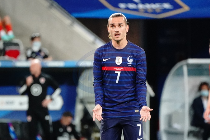 Info - Antoine Griezmann annonce sa retraite internationale - Info - Vidéo de Dembélé et Griezmann: l'éditeur de jeux vidéo Konami annule son contrat avec Griezmann - Antoine Griezmann (France) lors du match amical de préparation de l'UEFA Euro 2020 "France - Pays de Galles (3-1)" au stade Allianz Riviera à Nice, le 2 juin 2021. Friendly preparatory match for the UEFA Euro 2020 "France - Wales (3-1)" at the Allianz Riviera stadium in Nice. June 2nd, 2021.
