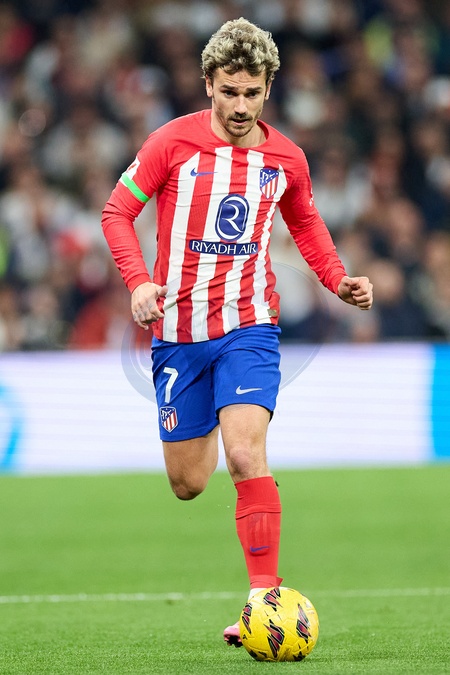 Info - Antoine Griezmann annonce sa retraite internationale - Match de LaLiga EA Sports "Real Madrid - Atletico Madrid (1-1)" au stade Santiago Bernabeu, le 4 février 2024. Antoine Griezmann of Atletico de Madrid runs with the ball during the LaLiga EA Sports match between Real Madrid CF and Atletico de Madrid at Estadio Santiago Bernabeu on February 4, 2024 in Madrid, Spain.