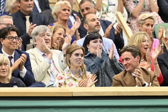Info - La princesse Béatrice D'York est enceinte de son deuxième enfant - HRH Princess Beatrice (La princesse Beatrice d'York) and Mrs Edoardo Mapelli Mozzi pictured in the Royal Box on day nine of the Wimbledon Tennis Championships at the All England Lawn Tennis and Croquet Club on July 09, 2024 in London, UK. © Chryslene Caillaud/Panoramic/Bestimage