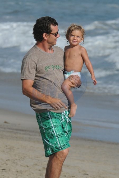 Gavin Rossdale z synem na plazy w Malibu
