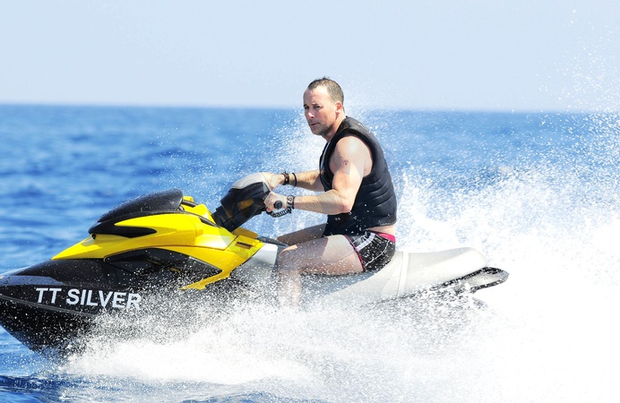 David Furnish na motorowce podczas wakacji, Saint Tropez