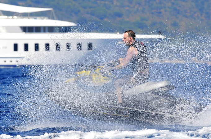David Furnish na motorowce podczas wakacji, Saint Tropez