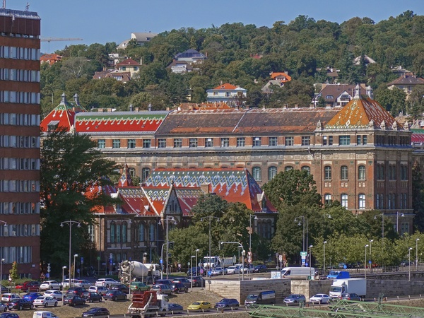 Hungary, Budapest, The colorful roof tiles of the more than 200-year-old University of Technology and Economics building, constructed in 1909 is listed as a UNESCO World Heritage Site., Credit:Fabio Mazzarella / Avalon