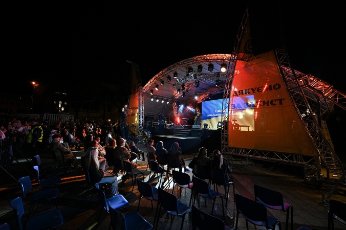 LVIV, UKRAINE - OCTOBER 1, 2024 - Spectators watch the concert near the Taras Shevchenko monument on the Day of Defenders of Ukraine, Lviv, western Ukraine., Credit:Anastasiia Smolienko / Avalon