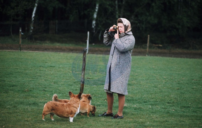 THE QUEEN IN WINDSOR GREAT PARK PHOTOGRAPHING HER CORGIS. CIRCA 1960'S. /, Credit:Anwar Hussein / Avalon