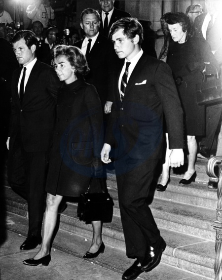 Leaving St. Patrick's Cathedral following a private service for Senator Robert Kennedy are L-R: his brother, Senator Edward Kennedy, his widow, Ethel, and his oldest son, Joseph P. 3rd. In the extreme right in the background is Mrs. Rose Kennedy his mother.New York - 7th June 1968, Credit:Avalon / Avalon